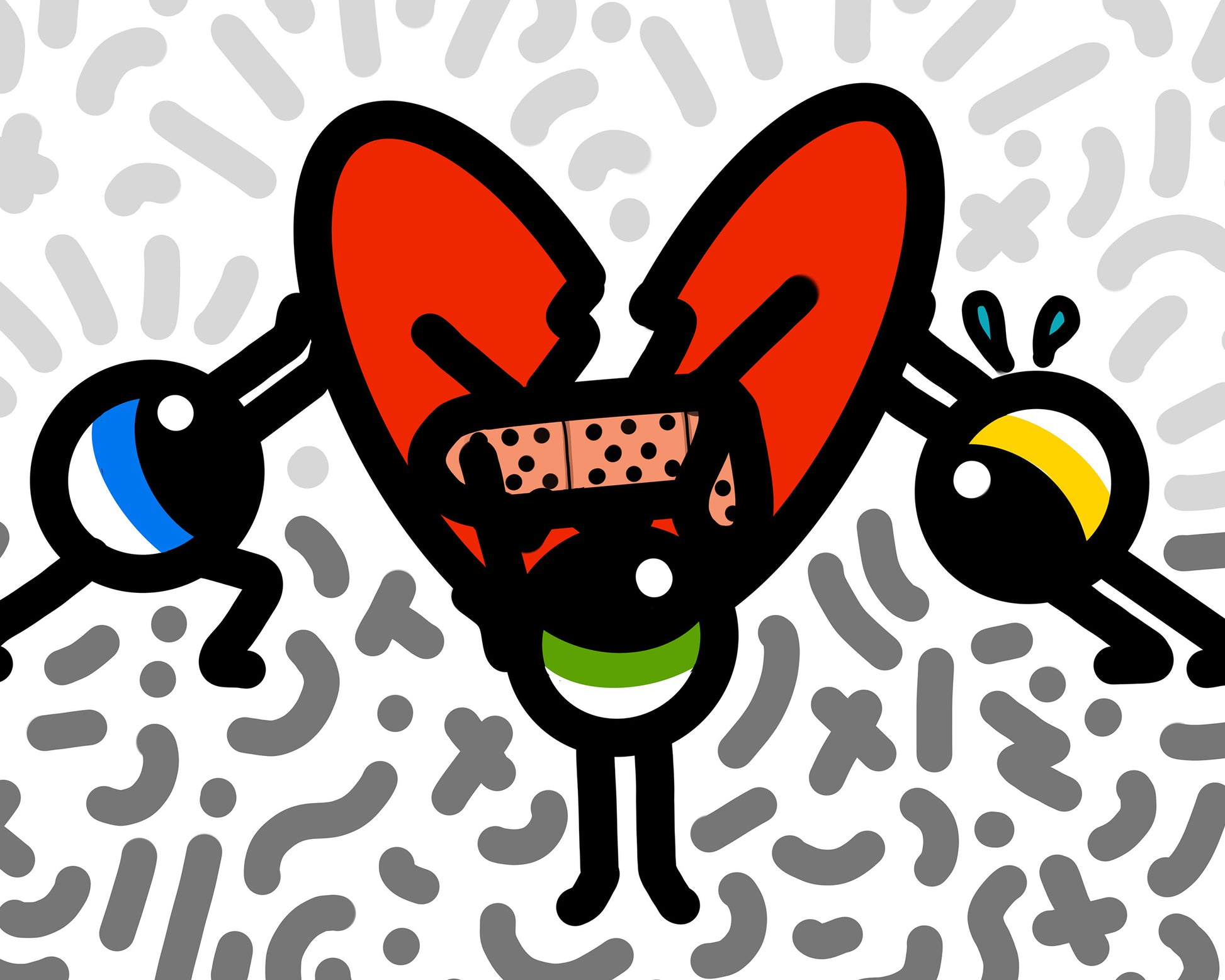 Even broken hearts can heal. On The Mend is a Loveville original that captures what it means to hold one another up when the world feels heavy. Three figures work together to lift a heart patched with a bandage — a symbol of healing, unity, and the power of community.