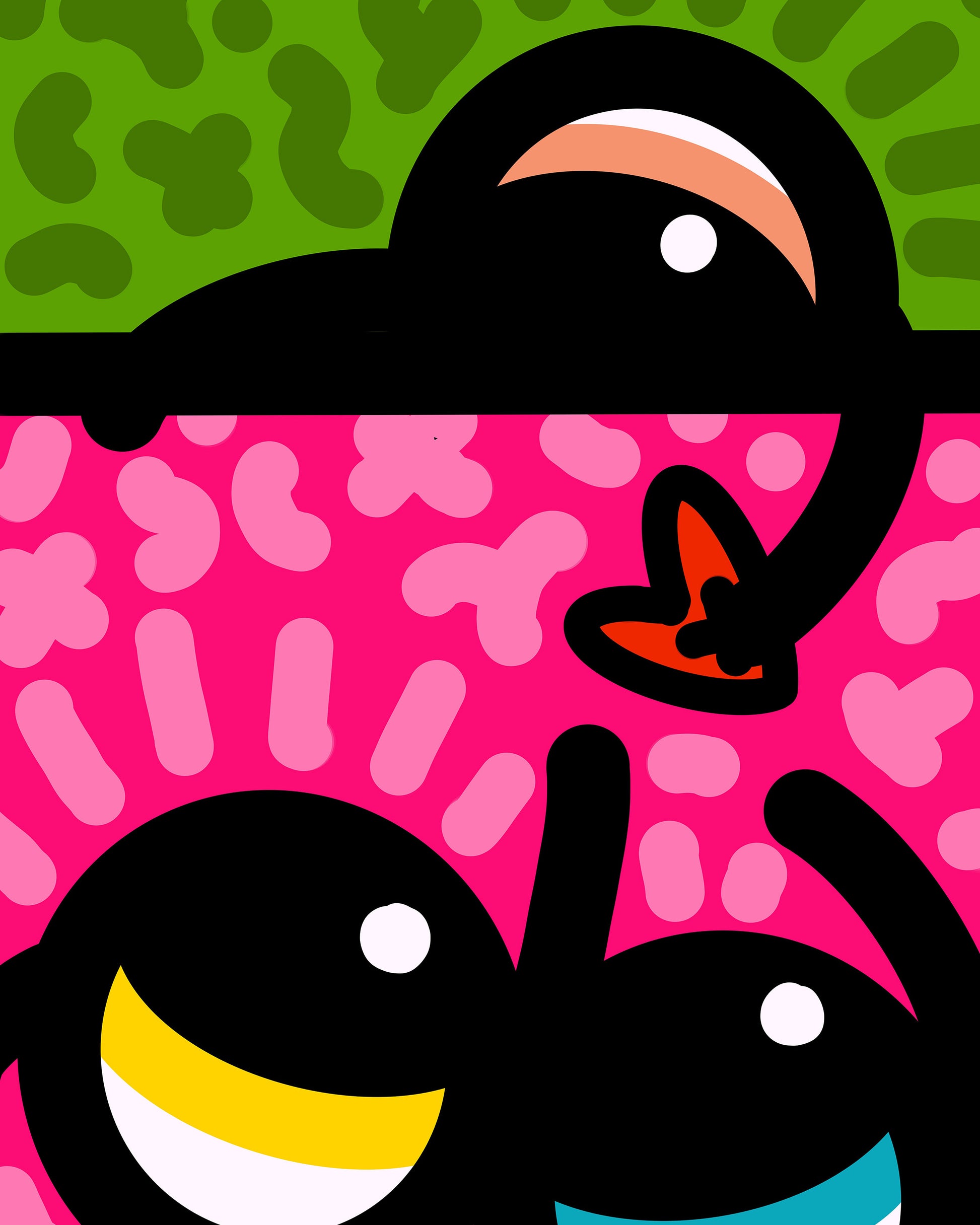 Love is meant to be shared. Pass Down is a Loveville original that celebrates the way kindness, joy, and love move between us—generation to generation, heart to heart. With bold color and playful figures, this piece captures the simple beauty of giving love freely and watching it grow.